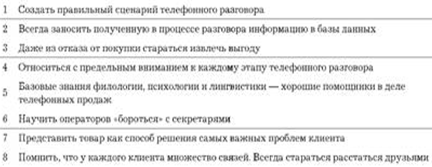 Таблица 1 - Ключевые составляющие успешных телефонных продаж