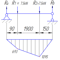 Fr = 7.3 kN Радиальная сила Fr = Rb