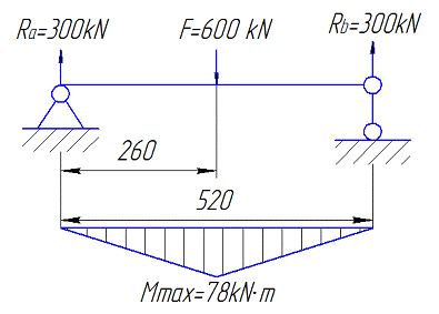 W = 0.168 м3. Сечение удовлетворяет условию прочности.