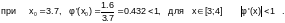 Условие j(x)Î[a;b] при xÎ[a;b] означает, что все приближения x1, x2, …, xn,…, полученные по итерационной формуле, должны принадлежать отрезку [a;b], на котором отделен корень.