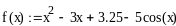 Приведем уравнение f(x)= x2 – 3∙x + 3.25 – 5∙cos(x) = 0 к виду, x = φ(x), удобному для итерации.