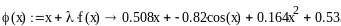 4 способ. Приведем уравнение к виду x=x+λf(x), где итерирующая функция ϕ(x)=x+ λf(x), а λ - итерационный параметр выберем из условия -1/r <λ<0, если f `(x)>0; или 0<λ<1/r, в том случае, если f `(x)<0 , где r=max(|f `(a)|, |f `(b)|) на [a; b]. Из таблицы значений производной f `(x), представленной в 3-м способе решения задачи определим r=max(|f