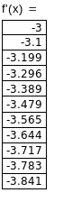 По графику и таблице видно, что производная не существует (т.е. имеет комплексные значения) примерно на [-∞; -0.4], а в оставшейся части отрезка с корнем [-0.4; 0] значения производной больше единицы. Следовательно, такая итерирующая функция тоже не обеспечивает сходимость метода итерации