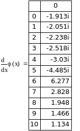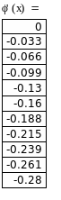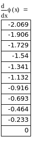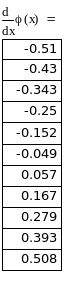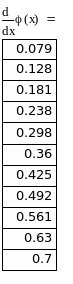 Из приведенной выше таблицы значений производной φ’(x) определим