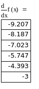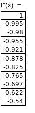 График и таблица значений производной