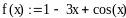 Пример 2.4-5. Выполнить «ручным расчетом» три итерации, решая уравнение f(x)=1 – 3x + cos(x) = 0 методом Ньютона.