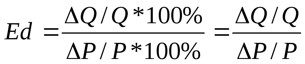 Математически эластичность спроса измеряется коэффициентом эластичности ( Ed ) и определяется по формуле: