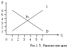 Цена по которой заключается реальная сделка, называется ценой равновесия или рыночной ценой. Эта цена при которой спрос точно равен предложению. Это точка пересечения кривых спроса и предложения. Отклонение цен от равновесного состояния приводит к возникновению дефицита или избытка.