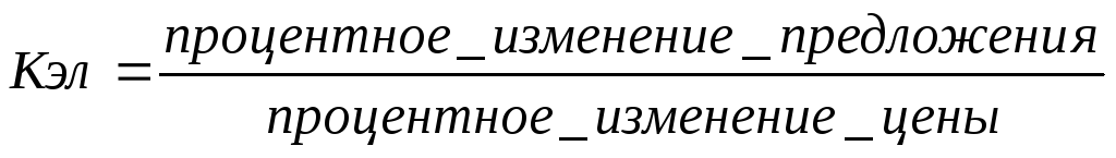 Зависимость величины предложения от изменения цены для разных групп товара различна. Предложение одних более чувствительно к изменениям цены, других – менее. Степень такой зависимости как и в случае спроса называется эластичностью. Эластичность измеряется коэффициентом, представляющим собой соотношение процентного изменения предложения к процентному изменению цены:
