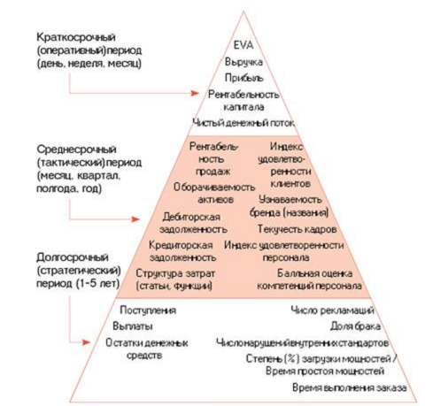 Система сбалансированных показателей (ealanced scorecard) – это система стратегического управления компанией на основе измерения и оценки ее эффективности по специально составленному набору показателей, отражающих все аспекты деятельности. Система строится исходя целей, повышению эффективности бизнес-процессов и работы предприятия в целом, каждого его подразделения и каждого сотрудника способствует внедрение количественно измеримых и надежных в оценке ключевых показателей эффективности (key performance indicators–КPI)