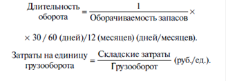 Число операций грузопереработки включает число перегрузок по ходу перемещения груза. Оборачиваемость запасов характеризует число оборотов, т.е. частоту обновления содержимого на складе за определенный промежуток времени.