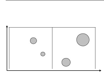 ного планування прийнято вважати модель Бостонської консалтингової групи. Ця модель являє собою своєрідне відображення позицій конкретно- го виду діяльності в стратегічному просторі, що визначається двома коор- динатними вісями, одна з яких використовується для виміру темпів росту ринку відповідного продукту, а інша — для виміру відносної частки про- дукції підприємства на ринку, що розглядається (рис. 8.5).