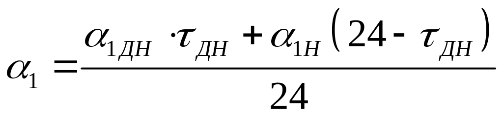 Усредненная (за сутки) величина интегрального коэффициента теплоотдачи находится по формуле