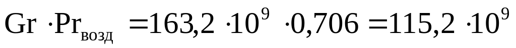 15. Произведение параметров Прандтля и Грасгофа для газового пространства