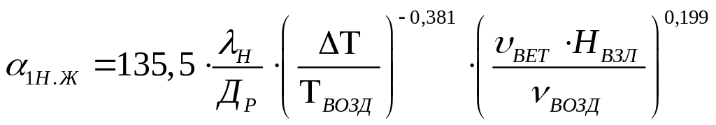Расчеты интегрального коэффициента теплоотдачи в ночное время выполняются по следующим зависимостям: