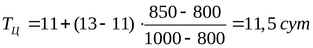 1. Используя данные таблиц 5.3 и 5.4, методом интерполяции находим продолжительность транспортного цикла поставок нефтепродукта (табл. 5.3) и коэффициент неравномерности потребления нефтепродуктов (табл. 5.4)