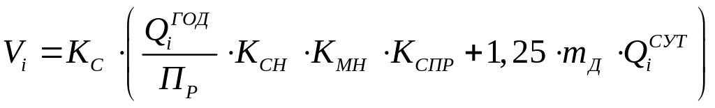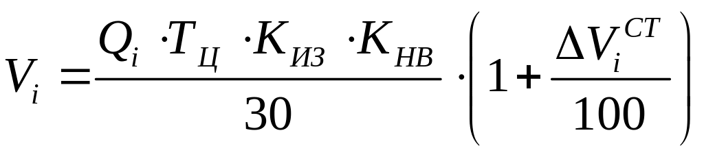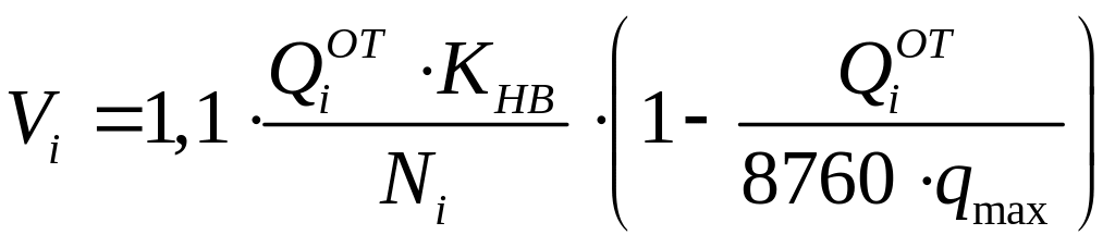 Необходимая вместимость резервуаров нефтебаз для i-го нефтепродукта определяется по формуле