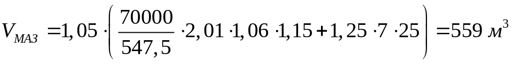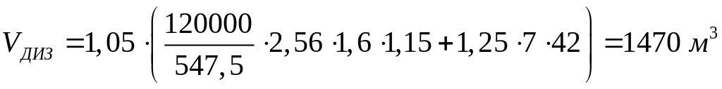 2. По таблице 5.5 находим коэффициенты , , , , для каждого нефтепродукта по формуле (5.8) вычисляем необходимые полезные объемы резервуаров