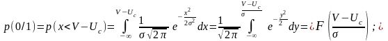 Аналогично, вероятность р(0/1)=р(z(t)<V)=p(Uc+х(t)<V)=p(x(t)<V-Uc) может быть записана в виде: