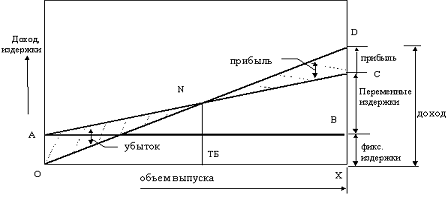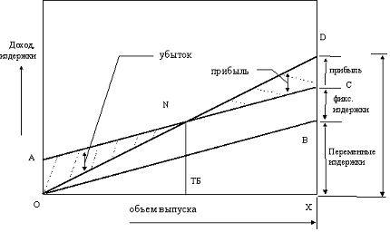 совокупных издержек определяет точку безубыточности (ТБ) «N», точку в которой
