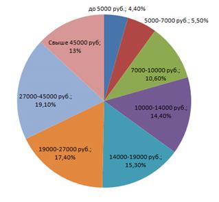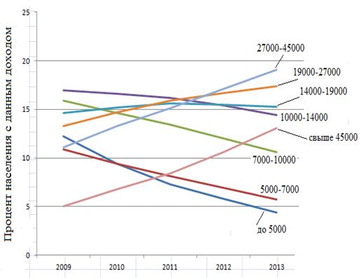 диаграмма распределения доходов в российском обществе по итогам 2013 г.