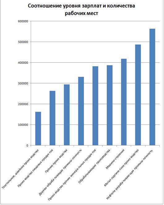 Из данной гистограммы наглядно видно, что, например в текстильном и швейном производстве может быть большое количество рабочих мест с низкими зарплатами и очень малое количество высокооплачиваемых должностей. Это говорит о высокой степени неравенства доходов в данном производстве.