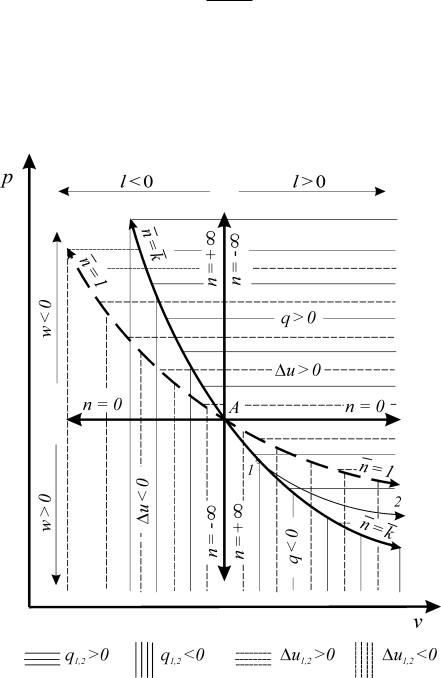 Адиабата ( q 0 ) является линией перемены знака теплообмена. При расширении газа термодинамическая работа l 0 и тогда любая политропа,