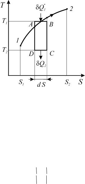 Рассмотрим реальный процесс 1-2 на диаграмме Т-S (рис. 17).