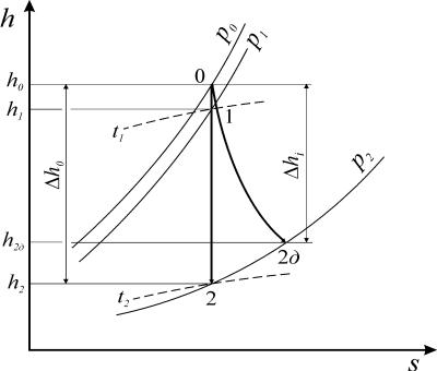 Рис. 24. Процесс истечения водяного пара в h-s диаграмме