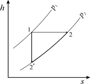 Рис. 26. Процесс дросселирования в h-s диаграмме