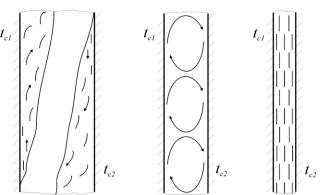 В узких каналах и щелях восходящий (у нагретой поверхности) и нисхо-