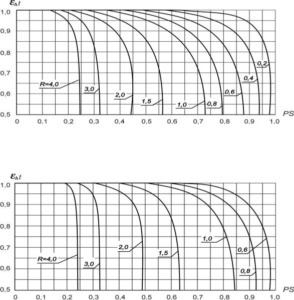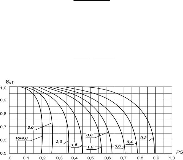 Рис. 26. Зависимость ε t от характеристик R и PS для двухходовых (по трубному пространству) кожухотрубных теплообменных аппаратов