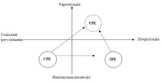 регулюванням” і „лібералізацією” позначаються на горизонтальній осі (рис. 1.7).