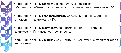 · Общественно-политические принципы, сформированные в результате познания социальной природы ГУ, общих закономерностей и основных особенностей развития ГУ;