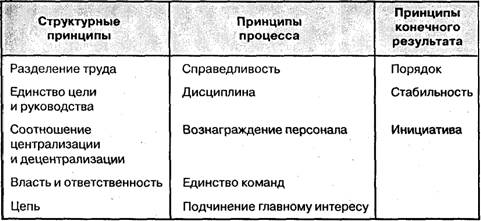 Файоль - четкие цели, один центр управления и контроля, благоприятное воздействие для проявления инициативы.