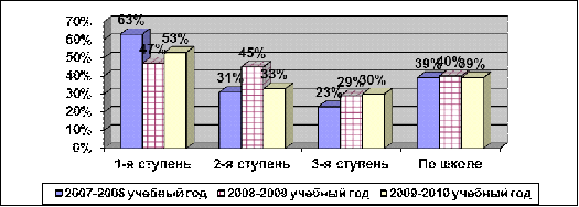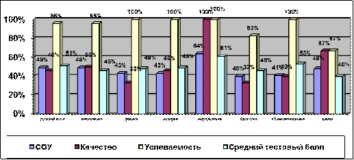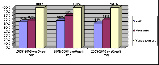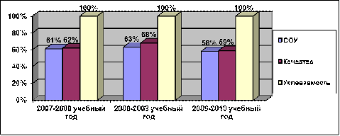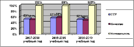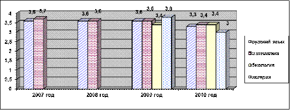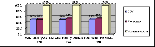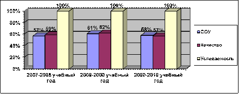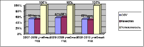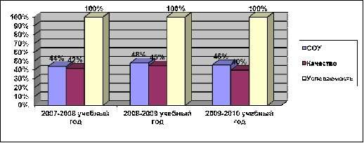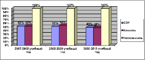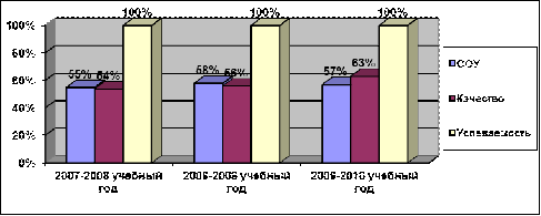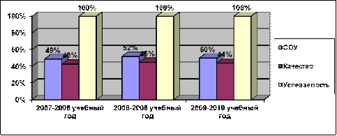 За период с 2007 по 2010 гг. включительно средний процент выпускников, сдавших на «хорошо» и «отлично» государственный экзамен, составил 32-59%. В целом показатели по годам стабильны. Высокое качество подготовки учащихся наблюдается по русскому языку и математике.