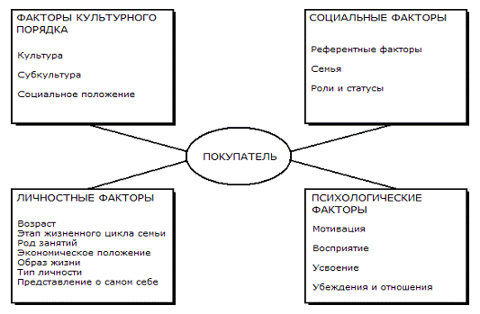 Выбор индивида является результатом сложного взаимодействия факторов экономического, культурного, социального, личного и психологического характера. Многие из этих факторов не поддаются влиянию со стороны рынка. Однако они оказываются полезными для выявления покупателей с повышенной заинтересованностью в товаре. Другие факторы поддаются воздействию со стороны деятеля рынка и подсказывают ему, как разработать и оценить товар, наладить его распространение и стимулирование сбыта, чтобы вызвать наиболее сильную ответную реакцию потребителей.