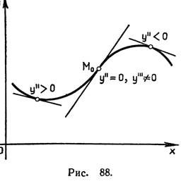 располагается по обе стороны от ее касательной, кривизна равна нулю, значит,