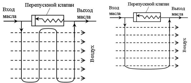 Масловоздушный радиатор может быть выполнен по схеме перекрестного тока, одноходовой по воздуху, четырех- (рис. 5.4) или двухходовой (рис. 5.5) по маслу.