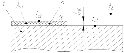 толщина слоя жидкой тепловой изоляции 2;
