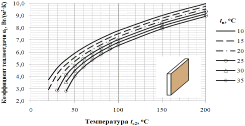 Рисунок 2.3 - График изменение коэффициента теплоотдачи плоского источника расположенного горизонтально