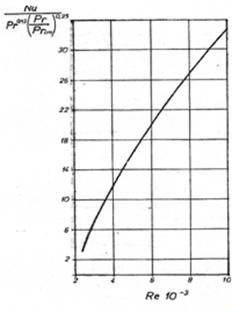 переходном режиме(2320<Re<10000) расчет коэффициента теплоотдачи