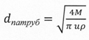 Где ???? - плотность теплоносителя на входе (для входного патрубка) или на выходе из аппарата, определяется по таблицам в зависимости от начальной или конечной температуры теплоносителя, кг/м3.- скорость теплоносителя на входе или на выходе из аппарата; скорость на входе принимается в пределах рекомендованных значений скоростей теплоносителей в трубах; скорость на выходе меньше скорости на входе за счет гидравлических сопротивлений аппарата.