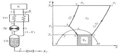 Рис. 1. Схема криогенной установки с однократным дросселированием.