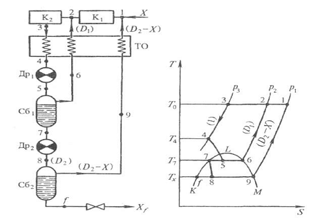 Рис. 2. Схема криогенной установки с двойным дросселированием