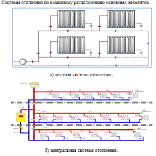 Способ расположения систем отопления в зависимости от места прокладкимагистрали