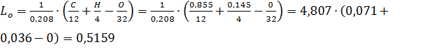 Теоретически необходимое количество воздуха для сгорания 1 кг топлива: