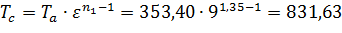 Давление и температура в конце сжатия: