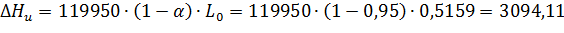 Теплота сгорания рабочей смеси:
