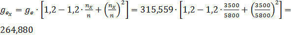 эмпирическим зависимостям в диапазоне частоты вращения коленчатого вала от nmin